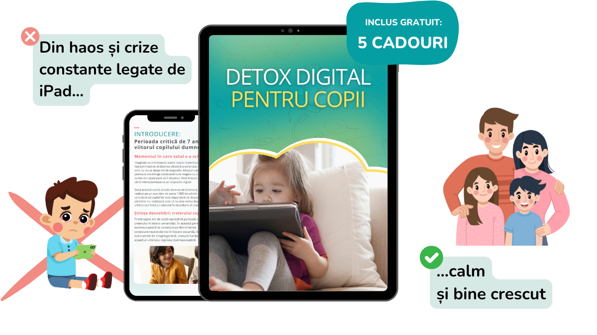 „În sfârșit, o abordare realistă care nu mă obligă să arunc toate dispozitivele noastre la gunoi! Acest ghid pas cu pas s-a potrivit programului nostru haotic și, în decurs de o lună, timpul petrecut în fața ecranului nu mai era un motiv de ceartă zilnică.”